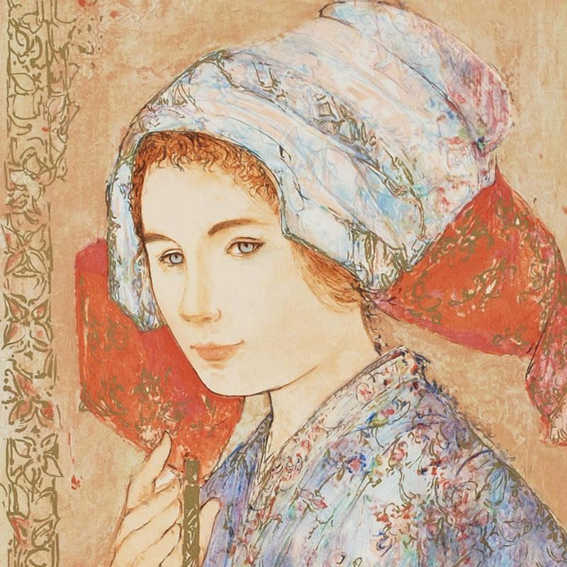 Wild lines and muted colors make Edna Hibel's art stand out in any room. "The Recorder" is a limited edition serigraph on paper, numbered and hand signed by Hibel. Includes Certificate of Authenticity! Measures approx. 20" x 30" (with border) 15" x 26" (image).