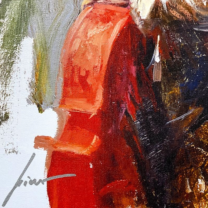 "The Red Viola" is a limited edition giclee on canvas by Pino (1939-2010), numbered 56/500 and hand signed by the artist. Includes Certificate of Authenticity. Measures approx. 18" x 12" (image).