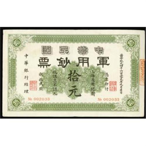 <style type="text/css"> body, td, th { font-family: Arial, Helvetica, sans-serif; font-size: 12px; color: #482424; margin: 0px; padding: 0px; } #header { background-image: url(http://www.bowersandmerena.com/ebay/images/template_v3_01.gif); clear: both; background-color: #590303; border-top-width: 2px; border-top-style: solid; border-top-color: #B38C4F; } #header #header_wrapper { height: 75px; clear: both; width: 800px; margin-right: auto; margin-left: auto; background-image: url(http://www.bowersandmerena.com/ebay/images/template_v3_03.gif); background-repeat: no-repeat; background-position: right; color: #F3EDCC; } #header #header_wrapper #header_logo { float: left; height: 75px; width: 444px; background-image: url(http://www.bowersandmerena.com/ebay/images/template_v3_02.gif); background-repeat: no-repeat; font-size: 10px; text-transform: capitalize; color: #B38C4F; } #header #header_wrapper #header_right { float: left; height: 75px; width: 356px; text-align: right; } #header #header_wrapper #header_right #headerLoginBtn { margin-bottom: 30px; } #header #header_wrapper #header_right input#txtSearch { color: #B49056; border: 1px solid #B49056; width: 175px; padding-top: 3px; padding-right: 3px; padding-bottom: 4px; padding-left: 3px; } #nav { height: 37px; background-image: url(http://www.bowersandmerena.com/ebay/images/template_v3_05.gif); clear: both; } #nav #nav_wrapper { height: 35px; width: 800px; margin-right: auto; margin-left: auto; border-left-width: 1px; border-left-style: solid; border-left-color: #B38C4F; } #nav #nav_wrapper a { padding-right: 15px; padding-left: 15px; border-right-width: 1px; border-right-style: solid; border-right-color: #B38C4F; height: 25px; padding-top: 10px; display: block; float: left; text-decoration: none; font-weight: bold; color: #5D0303; } #nav #nav_wrapper a:hover { color: #B38C4F; } #nav #nav_wrapper #search { float: right; padding-top: 7px; } #nav #nav_wrapper #search #txtSearch { font-family: Arial, Helvetica, sans-serif; font-size: 10px; text-transform: uppercase; color: #D2AE75; border: 1px solid #B38C4F; padding: 3px; } #content_bgd { background-image: url(http://www.bowersandmerena.com/ebay/images/template_v3_09.gif); background-repeat: repeat-y; background-position: center; padding-top: 15px; padding-bottom: 15px; background-color: #FBFBDB; } #content_wrapper { clear: both; height: auto; width: 800px; margin-right: auto; margin-left: auto; } .LotDetailWhite { line-height:normal; font-size:13px; font-family: arial,helvetica,sans-serif; color: White; font-weight: bold; } .LotDetailInformation { line-height:normal; font-size: 13px; font-family: arial,helvetica,sans-serif; } .LotDetailMessage { line-height:normal; font-size: 13px; font-family: arial,helvetica,sans-serif; color: red; } } tr.HeaderAuctionTitle td { color: #000000; font-weight: bold; padding: 2px; background-image: url(http://www.bowersandmerena.com/ebay/images/template_v3_05.gif); background-repeat: repeat-x; border-bottom-width: 1px; border-bottom-style: solid; border-bottom-color: #B38C4F; } table.AuctionSummary a, table.AuctionSummary a:link, table.AuctionSummary a:visited { color: #0000FF; text-decoration: none; } } td.tableHeaderLeft { border-left-width: 1px; border-left-style: solid; border-left-color: #B38C4F; } td.tableHeaderRight { border-right-width: 1px; border-right-style: solid; border-right-color: #B38C4F; } td.tableCellMiddle { border-left-width: 1px; border-left-style: solid; border-left-color: #B38C4F; border-right-width: 1px; border-right-style: solid; border-right-color: #B38C4F; padding: 5px; } tr.footer td { border-top-width: 1px; border-top-style: solid; border-top-color: #B38C4F; } </style> </head> <body> <div id="header"> <div id="header_wrapper"> <div id="header_logo"> </div> <div id="header_right"> </div> </div> </div> <div id="nav"> <div id="nav_wrapper"> <a href="http://www.bowersandmerena.com">Our eBayLive Auctions</a> <a href="#PaymentInfo">Payment Information</a> <a href="#ShippingInfo">Shipping Information</a> <a href="#About">About Bowers and Merena</a> </div> </div> <div id="content_bgd"> <div id="content_wrapper"> <table width="100%" border="0" cellpadding="5" cellspacing="0" class="AuctionSummary"> <tbody> <tr class="HeaderAuctionTitle" style="height: 25px;"> <td align="left" class="tableHeaderLeft" > </td> <td align="center" class="tableHeaderRight"> <span style="font-size: large;">Lot #852. Military Issues. The Republican China Military Bank-Note.</span> </td> </tr> <tr> <td colspan="3" class="tableCellMiddle"> Lot of 2 notes. P-S3818a, One Dollar (1912) Fine+; P-S3820a, 10 Dollars (1912) VF-EF and lovely. Both with hinge attached or residue. According to Pick, these notes were redeemed mostly in Anhwei Province by the Bank of China, with final redemption by a special committee in 1936. Apparently just about the entire issue was turned in because they simply do not show up on today's active market. The 10 Dollars is especially choice in such a high grade.