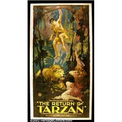 The Return of Tarzan, (Goldwyn, 1920). Three Sheet(41"X81") The third Tarzan film was originally called "The Return of Tarzan", but just two weeks before release, Goldwyn decided that it should be retitled since he felt the word "Return" might lead the public to believe it was a re-issue of an older film. This decision was made so late that many of the posters had already been printed as was the case with this three sheet which is the only copy known to exist. Fine on Linen. Important notice: We expect to be auctioning lots at the rate of 200-250 per hour. Sometimes eBay Premier live bid software cannot keep up with that pace, so we strongly recommend that you place a realistic proxy bid now as insurance to avoid disappointment. Also please note that all Heritage/CAA lots purchased through eBay Premier carry a 20% Buyer's Premium.