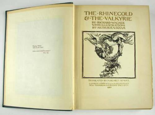 The Rhinegold & The Valkyrie, by Richard Wagner, translated by Margaret Amour, illustrated by Arthur Rackham, published by William Heinemann, of London & Doubleday, Page & Co., of New York, 1910, from the Estate of Charles Ragland Bunnell, Condition: Good, cover wear, no dust jacket