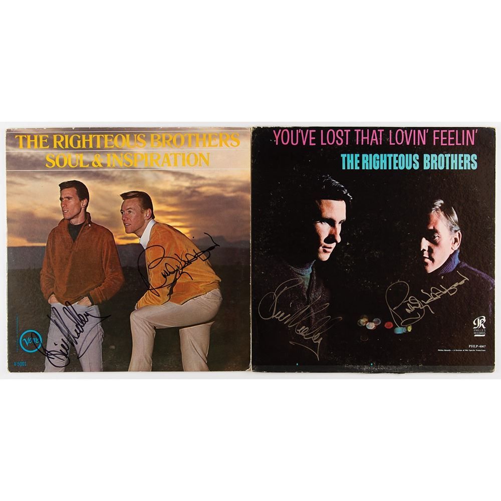 Two albums by the Righteous Brothers—Soul & Inspiration and You’ve Lost That Lovin’ Feelin’—both of which are signed on the front cover in black felt tip or gold ink by Bobby Hatfield and Bill Medley. In overall fine condition. The records are included.