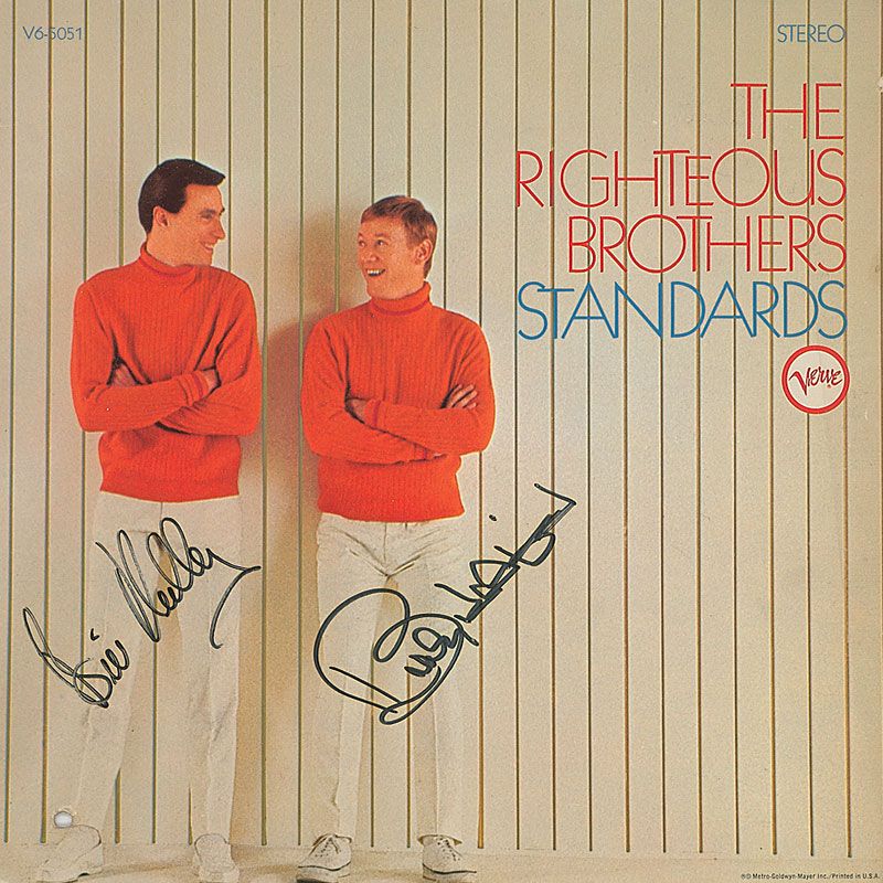 Standards album signed on the front cover in black felt tip by Bill Medley and Bobby Hatfield. In fine condition, with a punch hole to lower left corner and a few edge dings. The record is included. Accompanied by a full letter of authenticity from Roger Epperson/REAL.