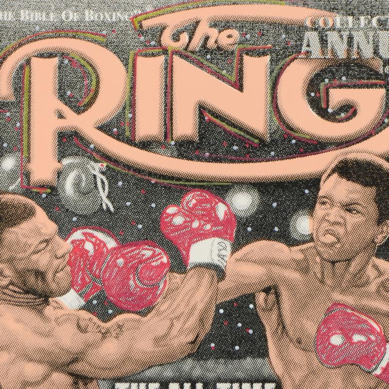 "The Ring" is a hand embellished limited edition silkscreen on canvas by Andy Warhol protege Steve Kaufman (1960-2010). This piece is numbered 22/100 and hand signed inverso. Includes Certificate of Authenticity. Measures approx. 14" x 14" (image). Please note: because the borders of this piece are cropped close, this piece may need to be mounted flat when framed.