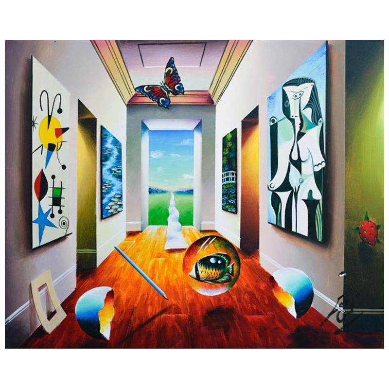 "The Road Is Long" is an original painting, oil on stretched canvas, by Ferjo. Hand signed by the artist, this piece comes with a letter of authenticity. Measures approx. 22" x 28" (image).