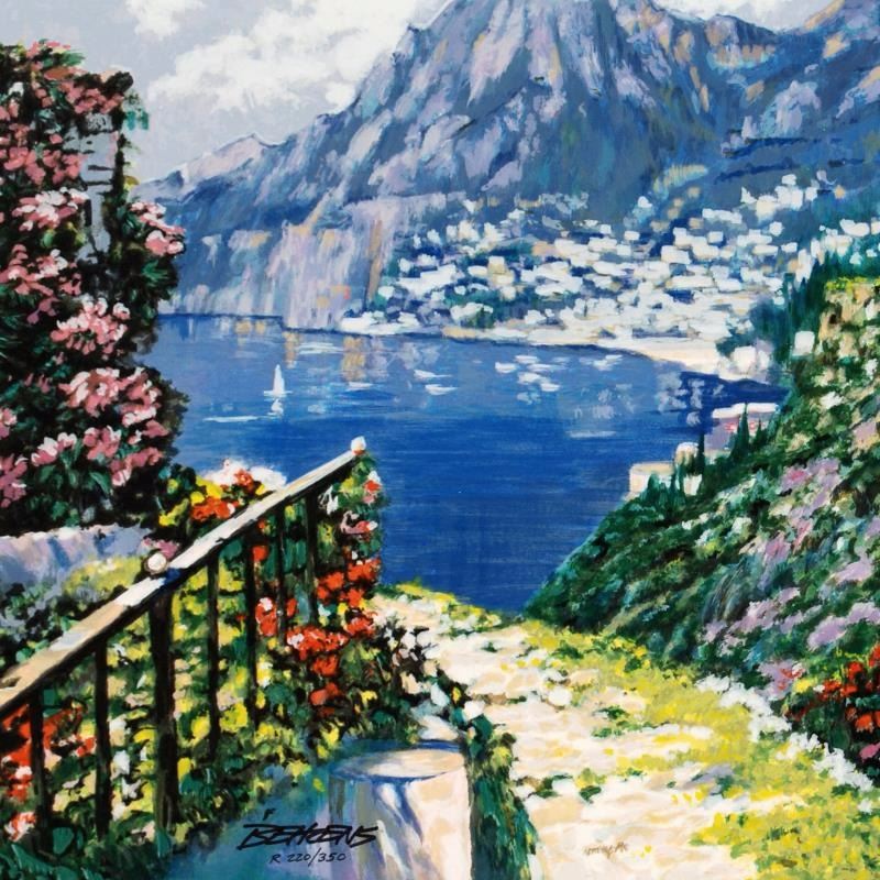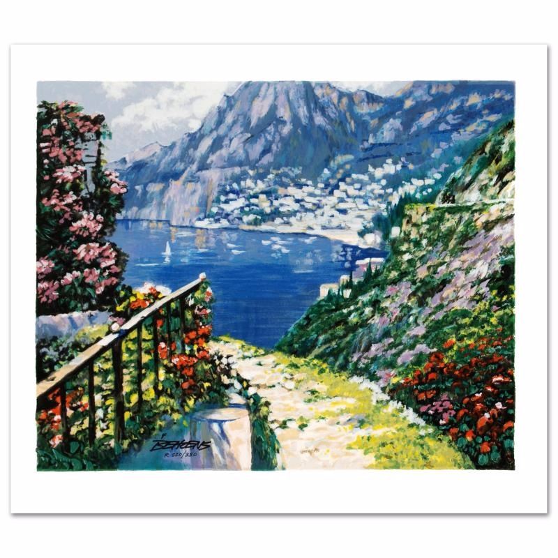 The Road to Positano is a limited edition serigraph on paper, numbered and hand signed by Howard Behrens (1933-2014). Includes Certificate of Authenticity! Measures approx. 23" x 20.5" (with border), 20" x 16.5" (image). Retail Price $1350. PRICE INCUDES FREE SHIPPING IN THE U.S. - SHIPPING WILL BE ADDED TO YOUR INVOICE FOR ALL BUYERS OUTSIDE OF THE U.S.