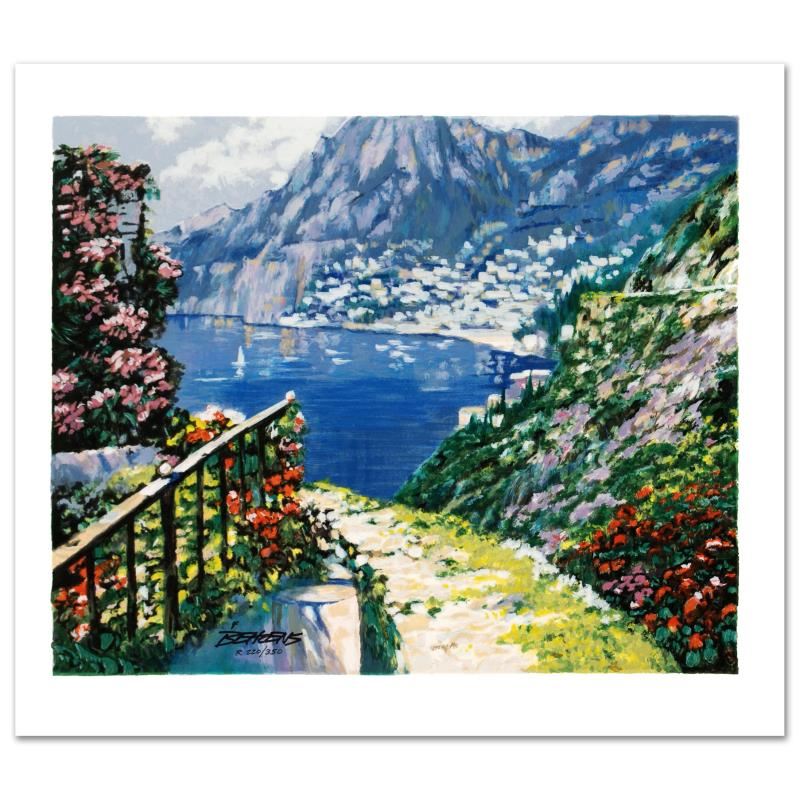 "The Road to Positano" is a limited edition serigraph on paper, numbered and hand signed by Howard Behrens (1933-2014). Includes Certificate of Authenticity! Measures approx. 23" x 20.5" (with border), 20" x 16.5" (image).