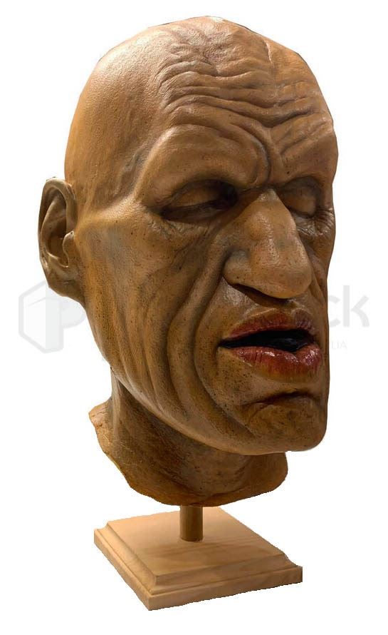Original makeup appliances used on the character of Lothar, actor Tiny Ron Taylor in the 1991 Disney film The Rocketeer. A young pilot stumbles onto a prototype jetpack that allows him to become a high-flying masked hero. As the second protagonist in the film, Lothar acted as a henchman for Neville Sinclair. This display head was created with original foam latex facial appliances used on the actor while filming the movie. These appliances are fragile but remain in excellent, production used condition.