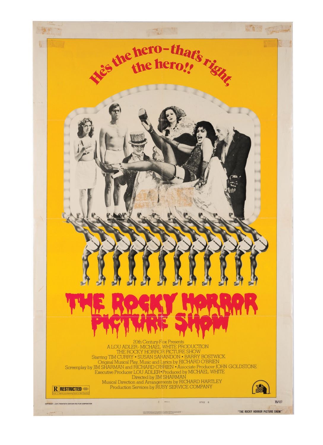 (20th Century Fox, 1975) An original release one sheet poster for "The Rocky Horror Picture Show." Measuring 27"x41", the poster is in good condition with some adhesive tape stains visible within the borders.