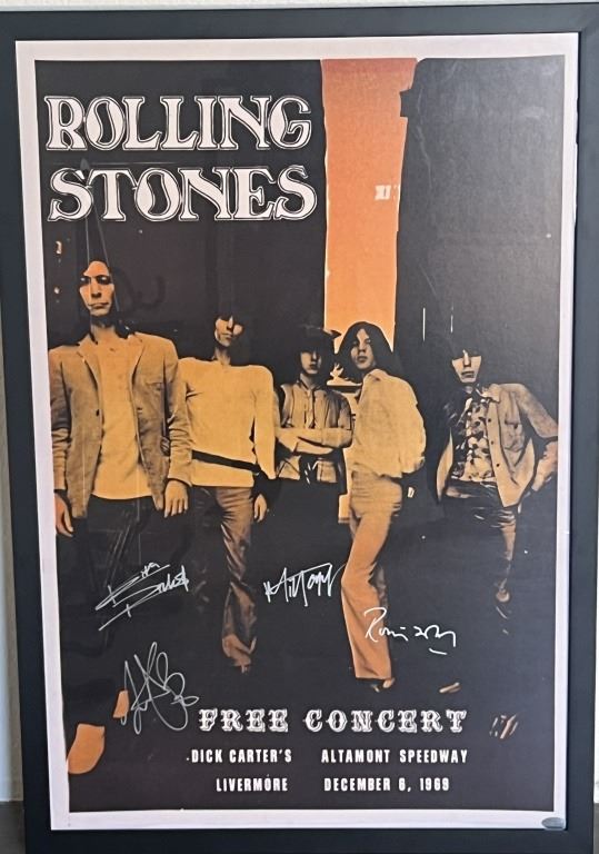 The Rolling Stones signed Altamont Free Concert 1969 poster. 24x36 inches. PD282