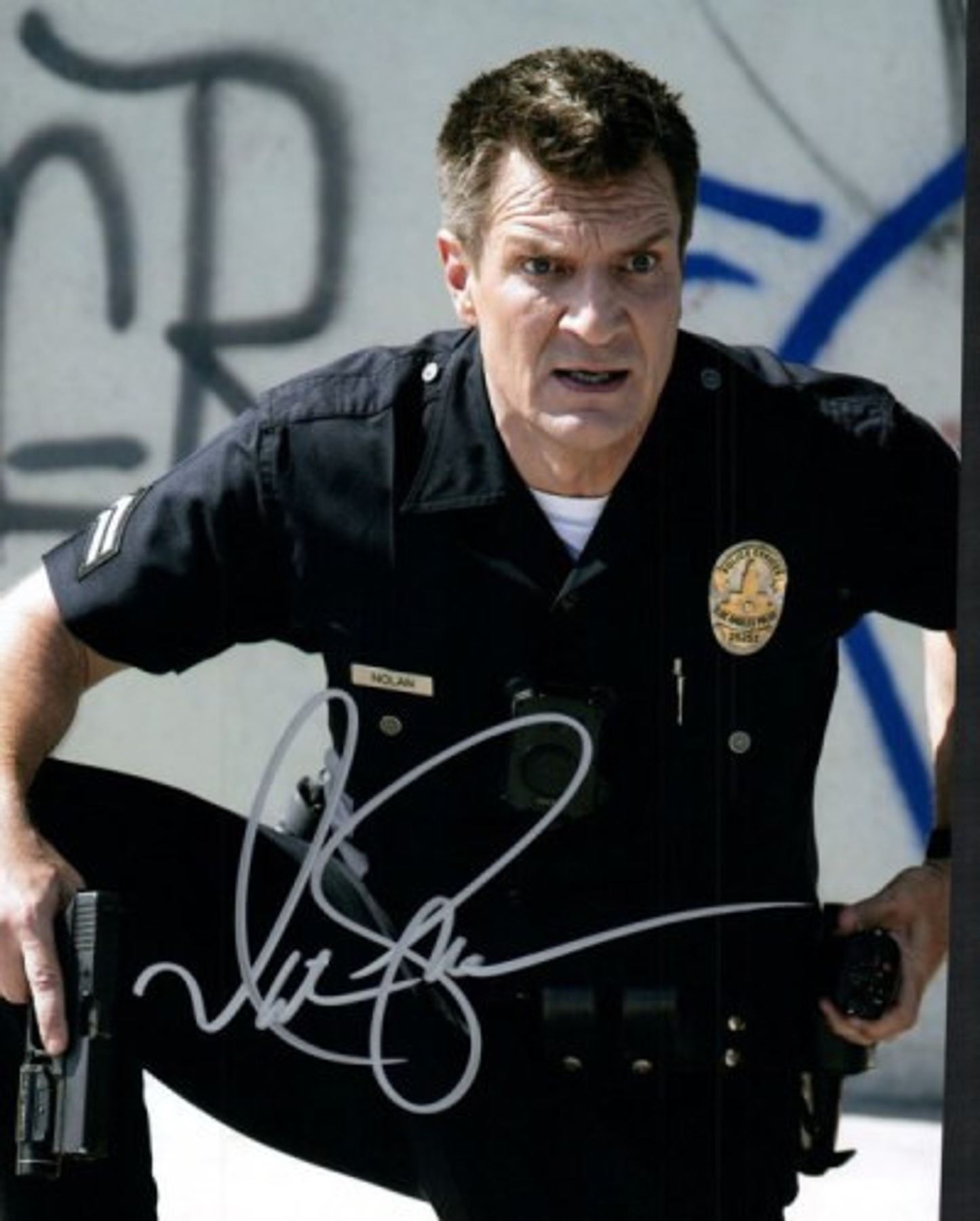 The Rookie Nathan Fillion facsimile signed photo. 8x10 inches. This item is a reprint of an original autograph