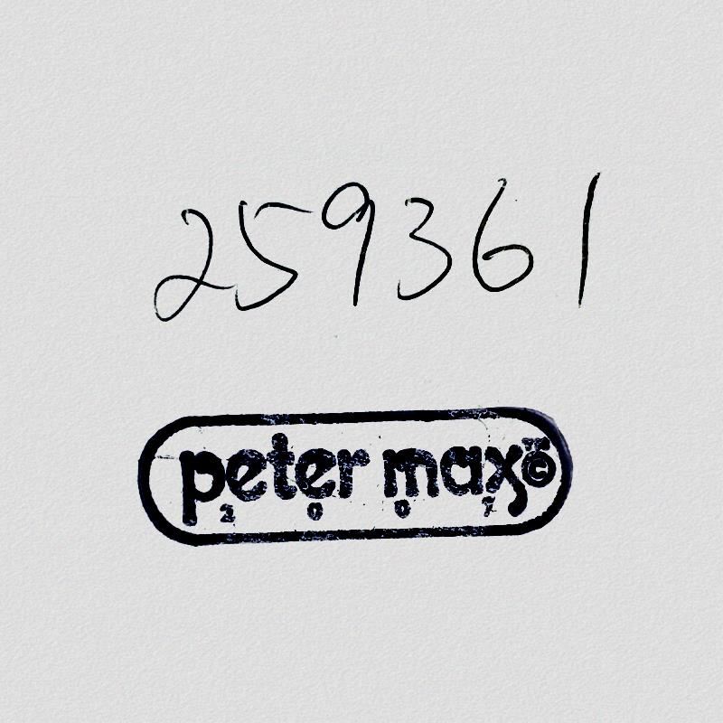 "The Room" is a one-of-a-kind mixed media on paper, hand signed by Peter Max. The piece comes custom framed with a backside cutout to display Peter Max Studio registration number 259361 certifying authenticity. Measures approximately 36" x 48" (frame), 24" x 36" (image). This item requires special handling and may have a longer than usual turnaround.