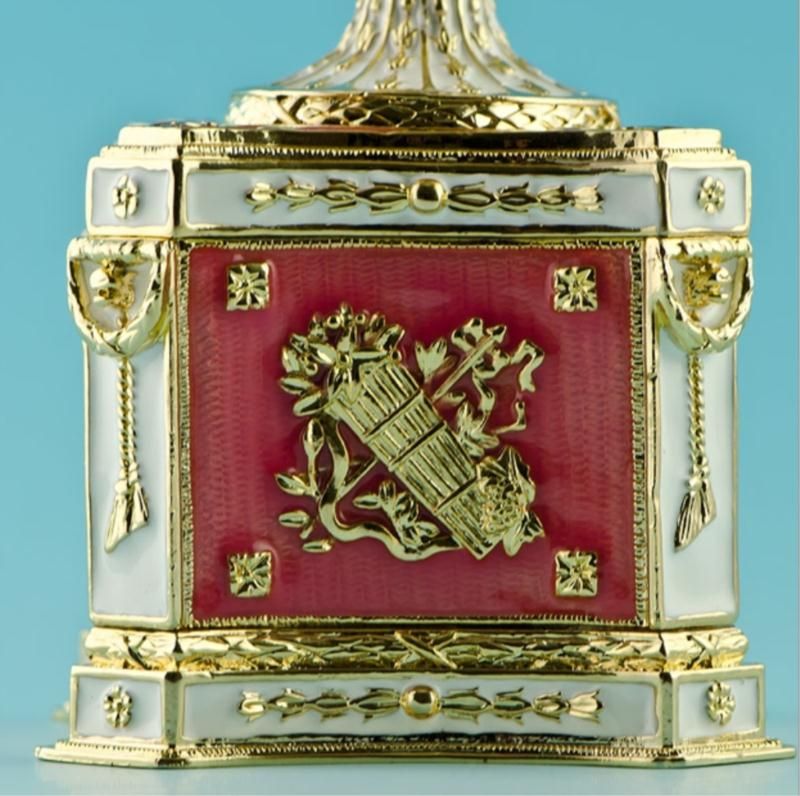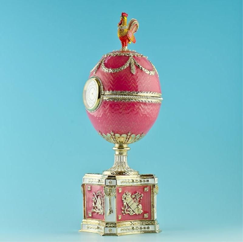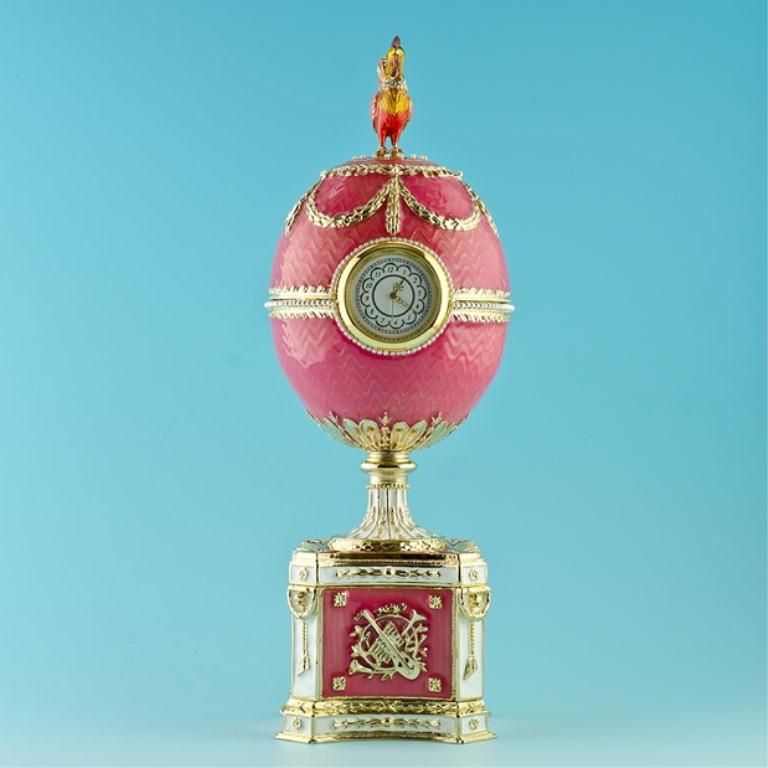 The Rothschild egg is a jewelled, enameled decorated craft made under the supervision of the Russian jeweller Peter Faberge in 1902 by the workshop of Michael Perchin, for Beatrice Ephrussi de Rothschild, who presented the egg to Germaine Halphen upon her engagement to Beatrice's younger brother, Edouard Alphonse James de Rothschild. It is one of the few eggs that was not made for the Russian Imperial family, and had been in the Rothschild family since 1905. It was one of the most expensive eggs that Faberge had ever made and sold. It was sold by Christie's auction house on November 2007, for ?8.9 million. The price achieved by the egg set three auction records: it is the most expensive timepiece, Russian object, and Faberge object ever sold at auction. The egg was bought by Alexander Ivanov, the director of the Russian National Museum. "It's one of the most beautiful, valuable and most intricate Faberge eggs ever," Ivanov said. 9'' (H) X 3'' (D) Pewter, Enamel, Crystals