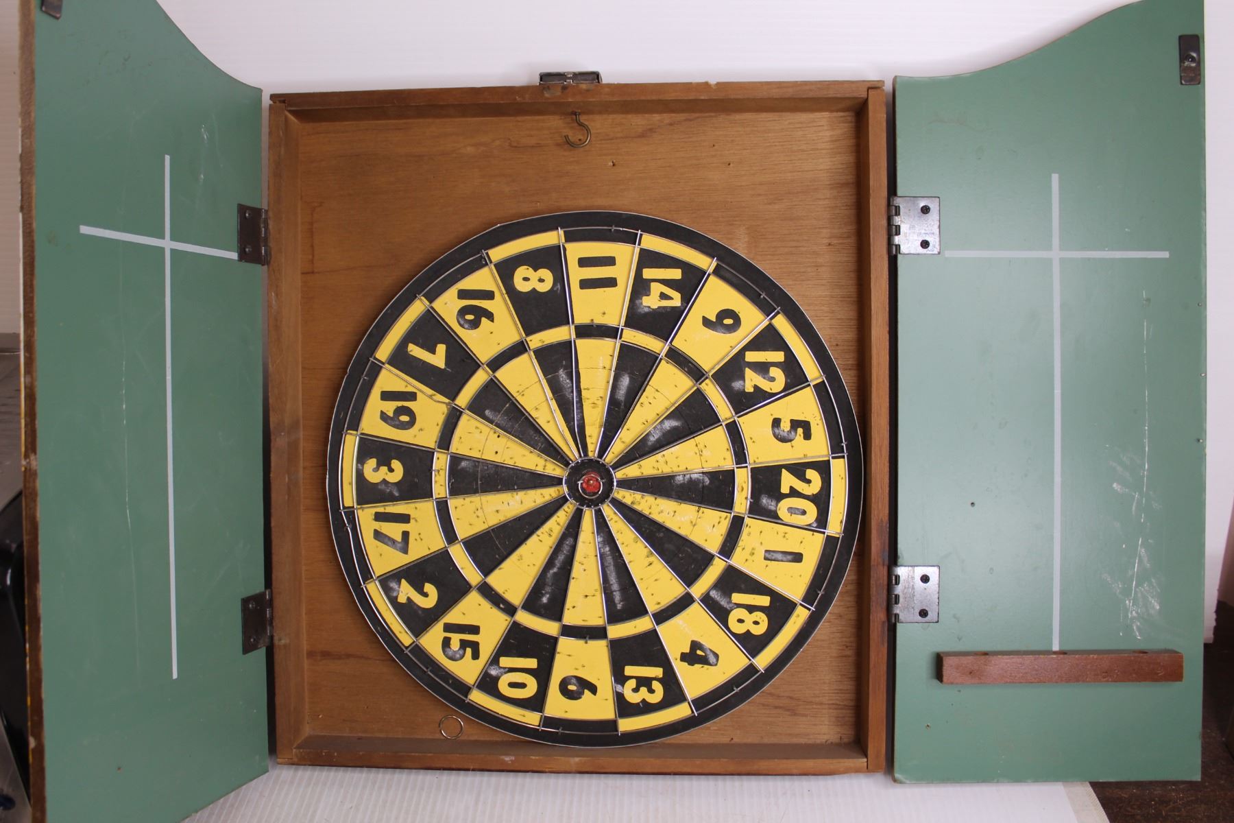 The Royal Arms Cabinet with Dart Board, Toaster Oven with Pans (Working)