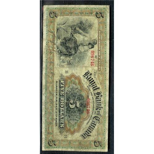 The Royal Bank of Canada 1901 $5 630-10-02-02 Kenny engraved "r.brown" about Fine. Only a few examples are known, excessively rare! Don't miss this opportunity to acquire one of the rarest chartered banknote from one of the most popular Bank. Underr