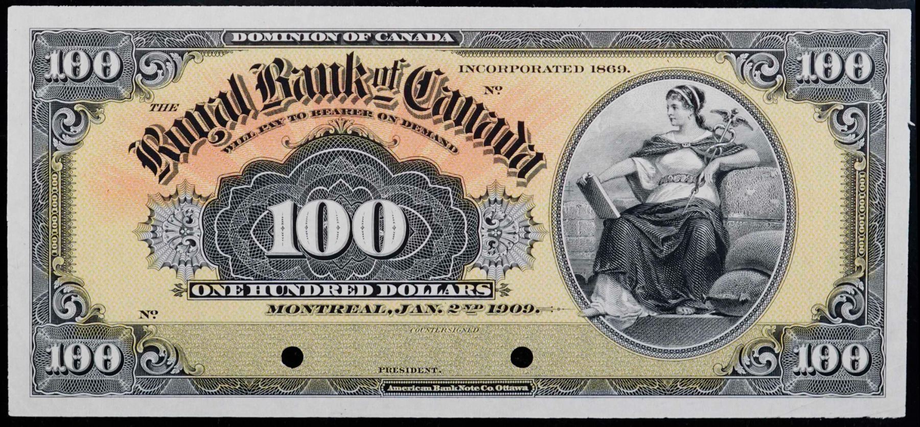 The Royal Bank of Canada; 1909 $100 CH-630-10-04-34P, PMG Choice About Uncirculated-53.
