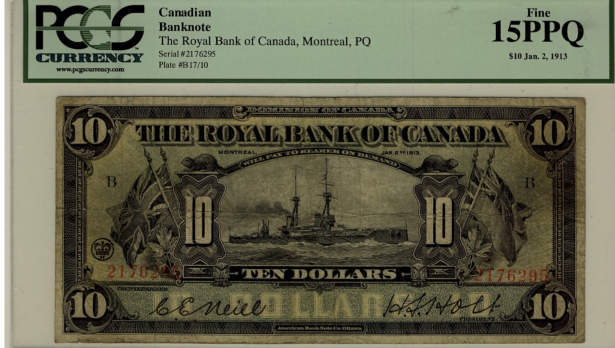 The Royal Bank of Canada 1913 $10 2176295 CH-630-12-04 PCGS F15PPQ