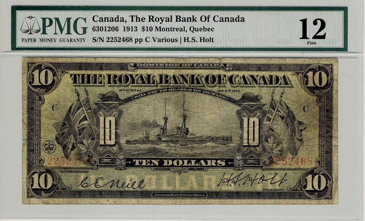 The Royal Bank of Canada 1913 $10 #2252468, CH-630-12-08. PMG F12.