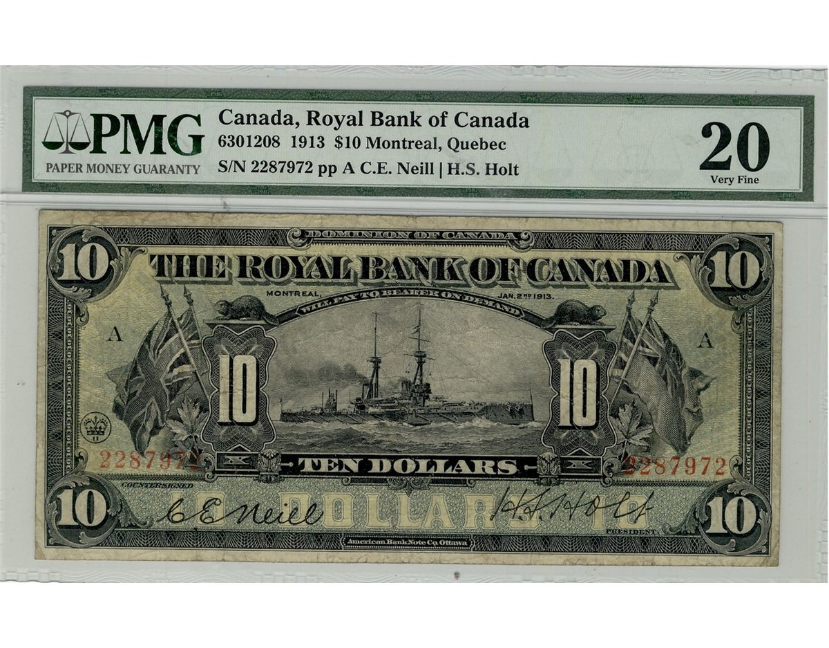 The Royal Bank of Canada; 1913 $10 #2287972 CH-630-12-08 PMG VF20.