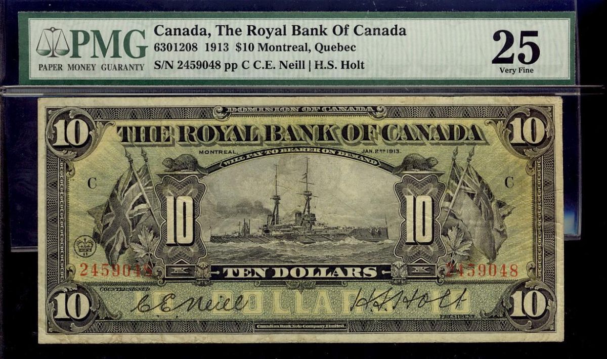 The Royal Bank of Canada 1913 $10 #2459048 CH-630-12-08 PMG VF25.