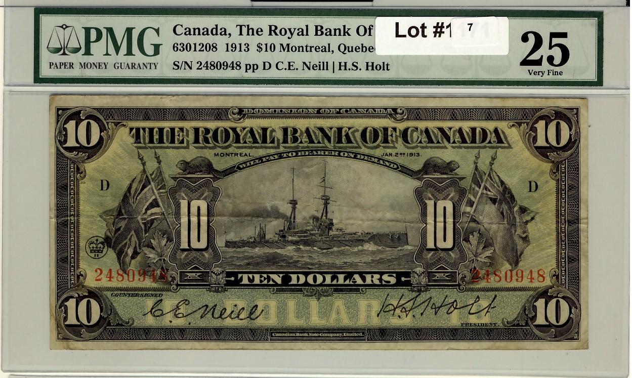 The Royal Bank of Canada, 1913 $10 #2480948, CH-630-12-08, PMG VF25.