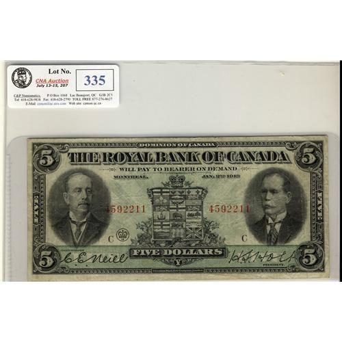 The Royal Bank of Canada 1913 $5. CH-630-12-04. A nice F+ note with nice birght look. #4592211