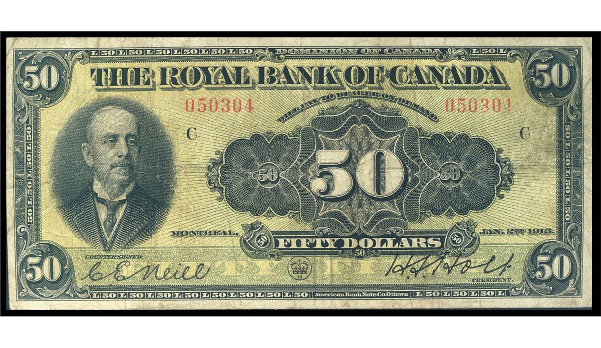 The Royal Bank of Canada; 1913 $50 #050301 CH-630-12-18 PMG VF20. Extremely rare example with only 15 known.