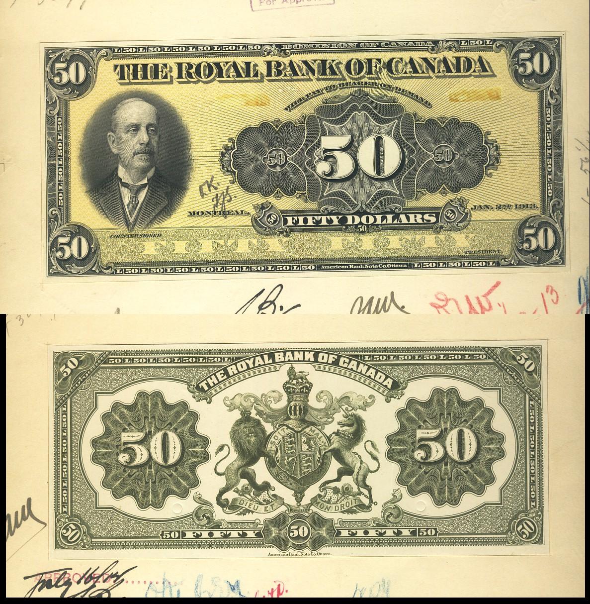 The Royal Bank of Canada 1913 $50 CH-630-12-14 PCGS AU58, Face and Back proofs AU55.