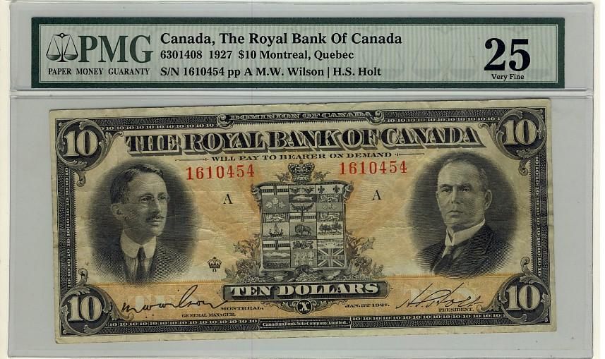 The Royal Bank of Canada , 1927 $10 #1610454, CH-630-14-08, PMG VF25