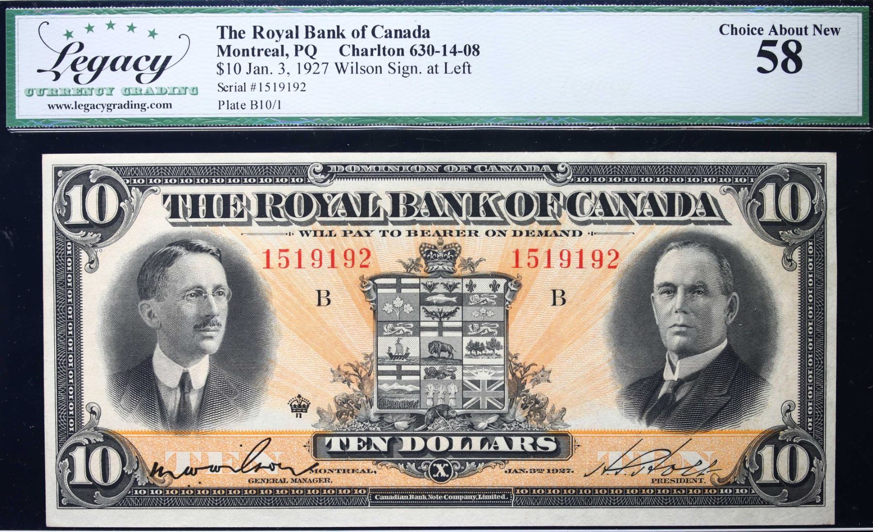 The Royal Bank of Canada 1927 $10 CH-630-14-08 #1519192 LCG Choice About Uncirculated-58