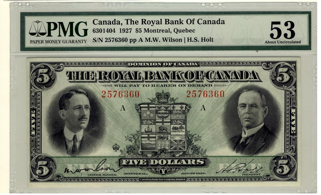 The Royal Bank of Canada 1927 $5 2576360 CH-630-14-04 PMG AU53