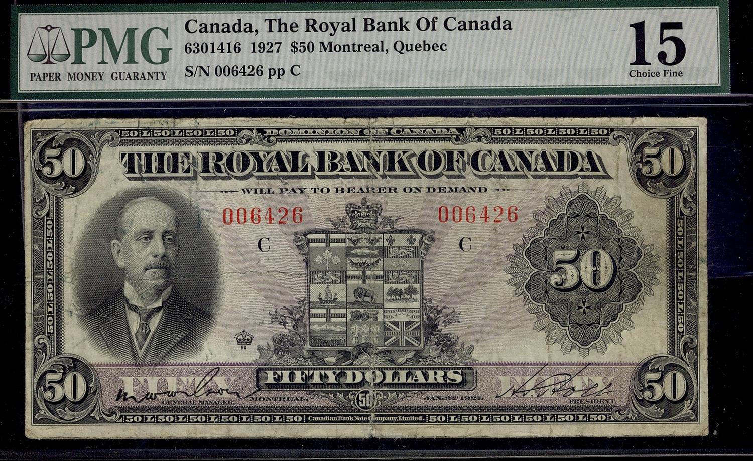 The Royal Bank of Canada, 1927 $50 #006426 CH-630-14-16. PMG F15.