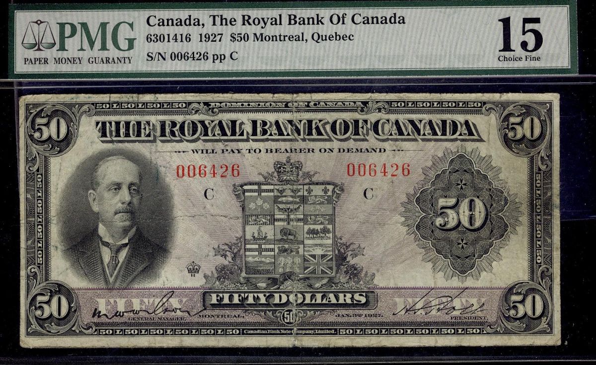 The Royal Bank of Canada, 1927 $50 #006426 CH-630-14-16. PMG F15.