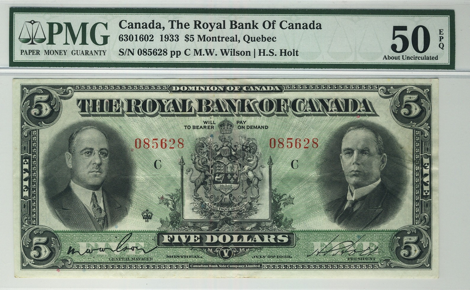 The Royal Bank of Canada 1933 $5 085628 CH-630-16-02 PMG AU50EPQ
