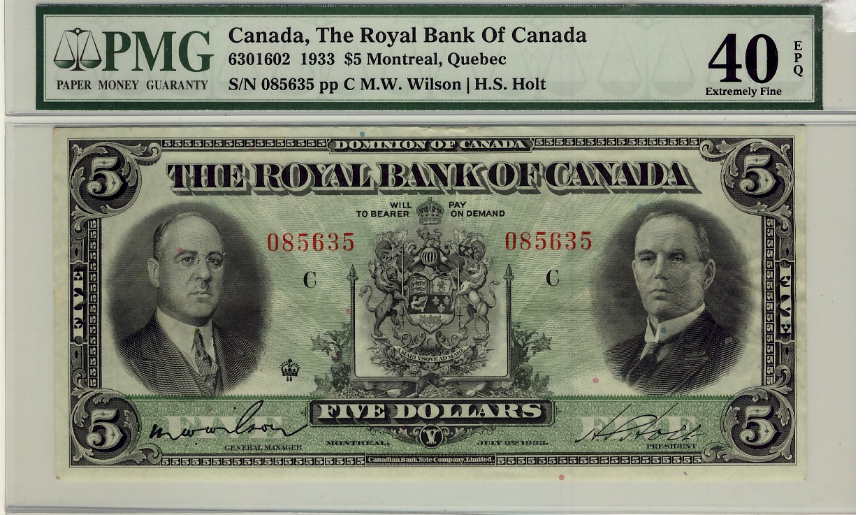 The Royal Bank of Canada 1933 $5 085635 CH-630-16-02 PMG EF40