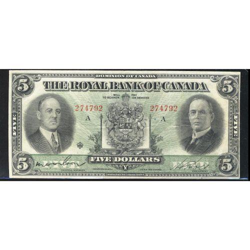 The Royal Bank of Canada 1933 $5 CH630-16-04 No.274792 VF+. Issues of 1933 are very difficult to find. Scarce and underrated.