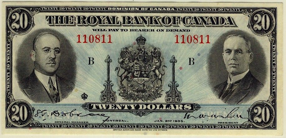 The Royal Bank of Canada 1935 $20 110811 CH-630-18-06a PCGS AU58.