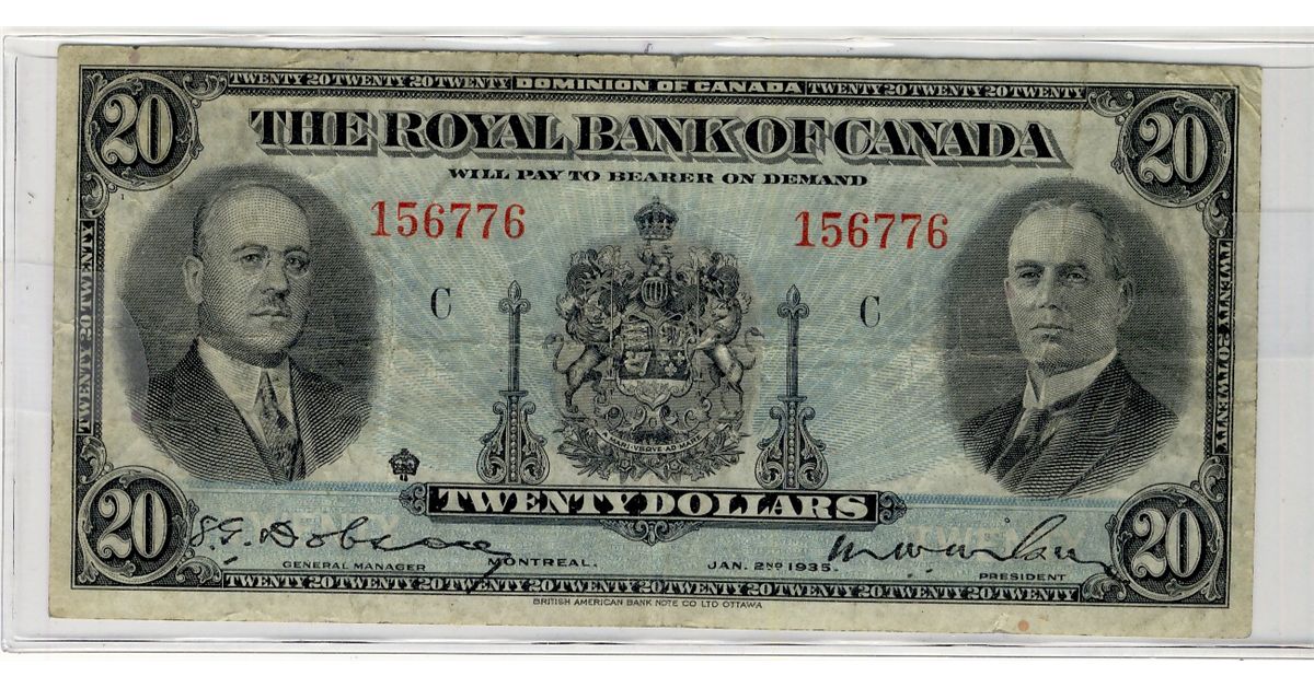 The Royal Bank of Canada 1935 $20 #156776 CH-630-18-06a. VF issue.