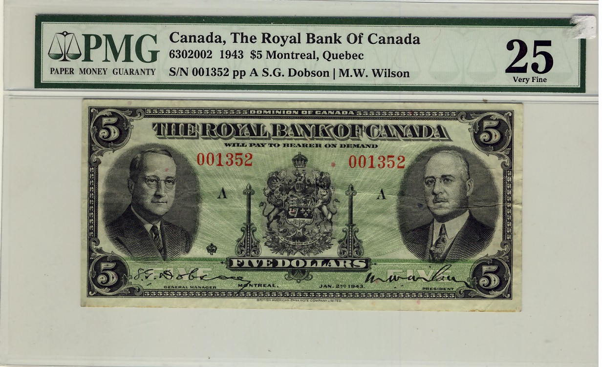 The Royal Bank of Canada, 1943 $5 001352 CH 630-20-02 PMG VF25