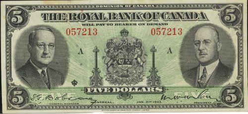 The Royal Bank of Canada 1943 $5 A057213 EF. An nice example.