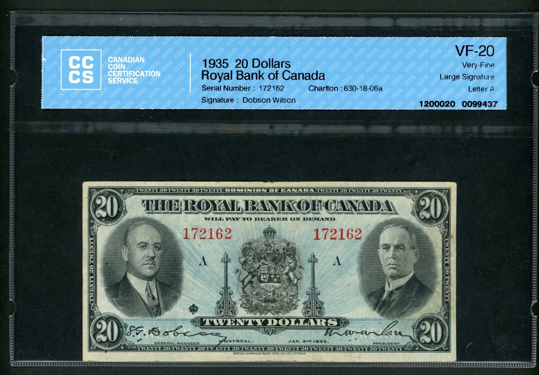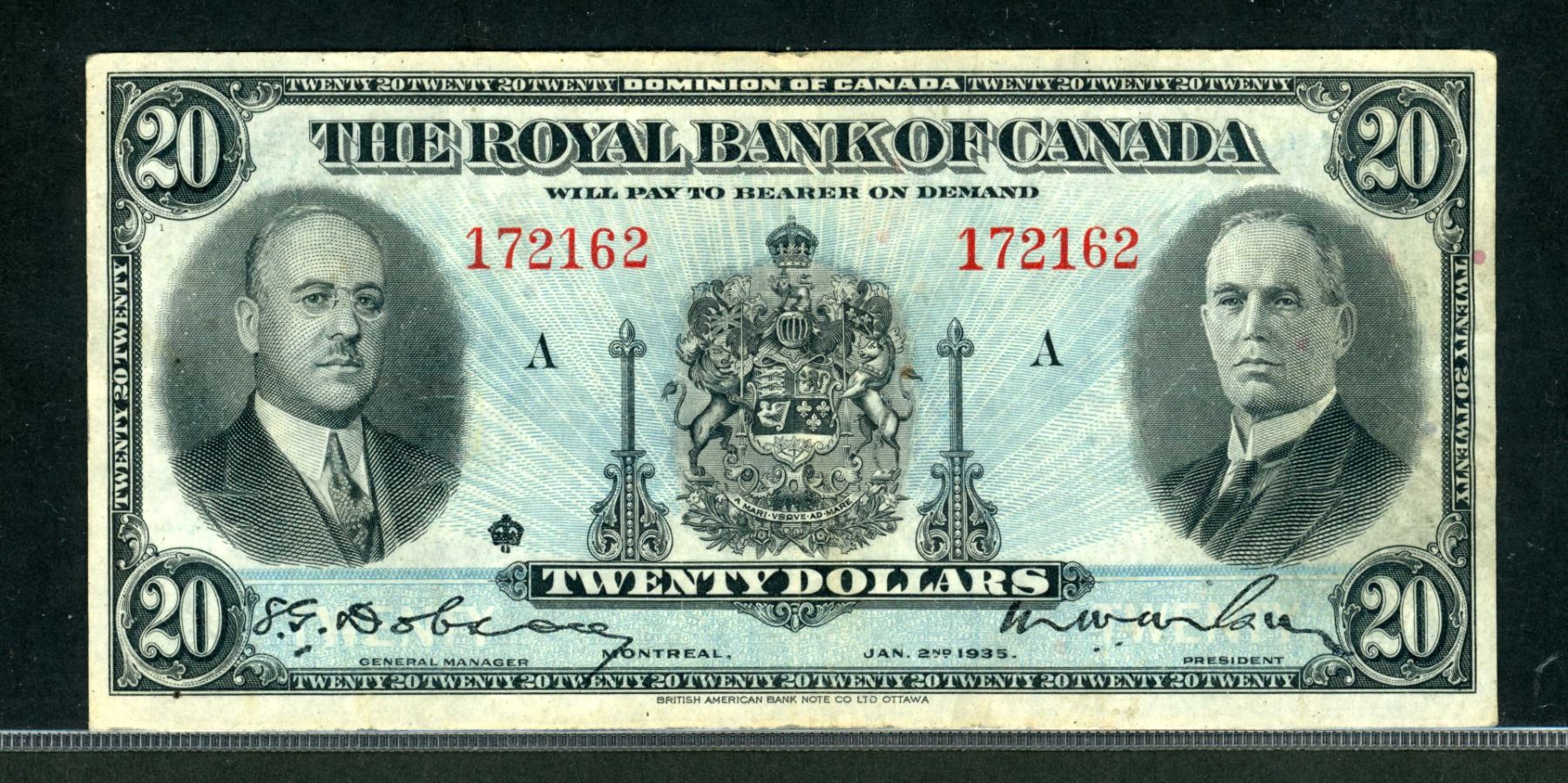 The Royal Bank of Canada $20.00 1935. CCCS Banknote VF-20