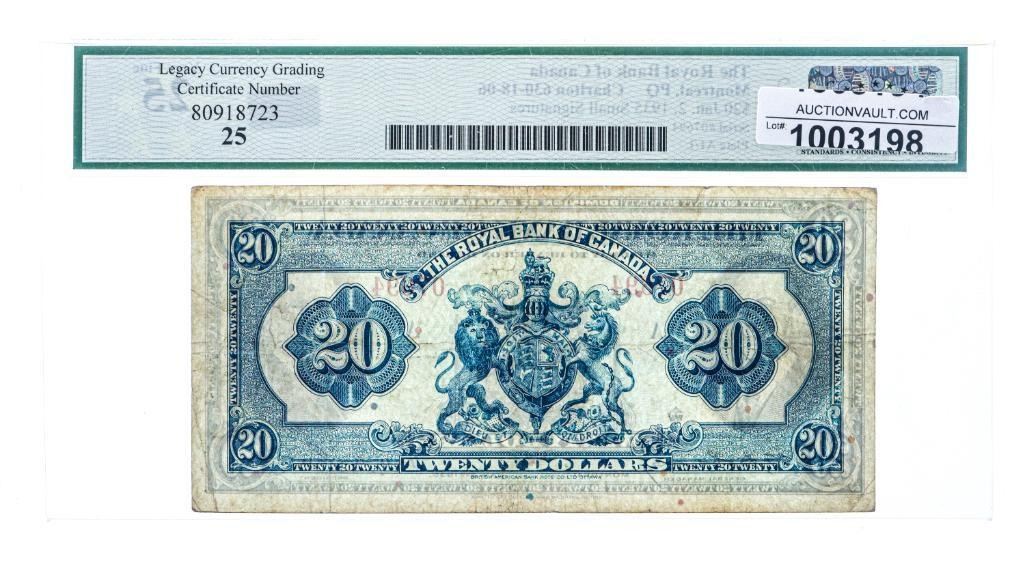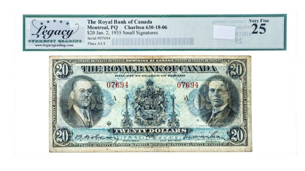 The Royal Bank of Canada,Montreal PQ 1935 $20 Small Signatures VF 25 Legacy