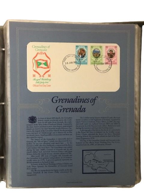 The Royal Wedding England’s Prince Charles to Lady Diana Spencer first day cover collection book. An international collection of official first day covers issued by British commonwealth nations and dependencies. From the Postal commemorative society.