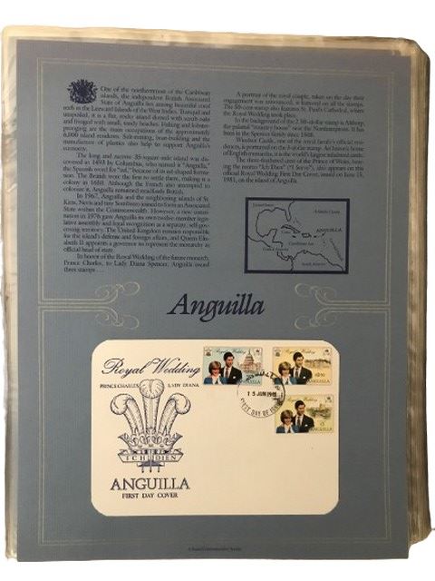 The Royal Wedding England’s Prince Charles to Lady Diana Spencer first day cover collection book. An international collection of official first day covers issued by British commonwealth nations and dependencies. From the Postal commemorative society.