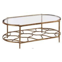 Contemporary metal base with glass top (with center cut 1/2" hole) low rise coffee table. Glass top: 30" diameter. Height of base:13".
