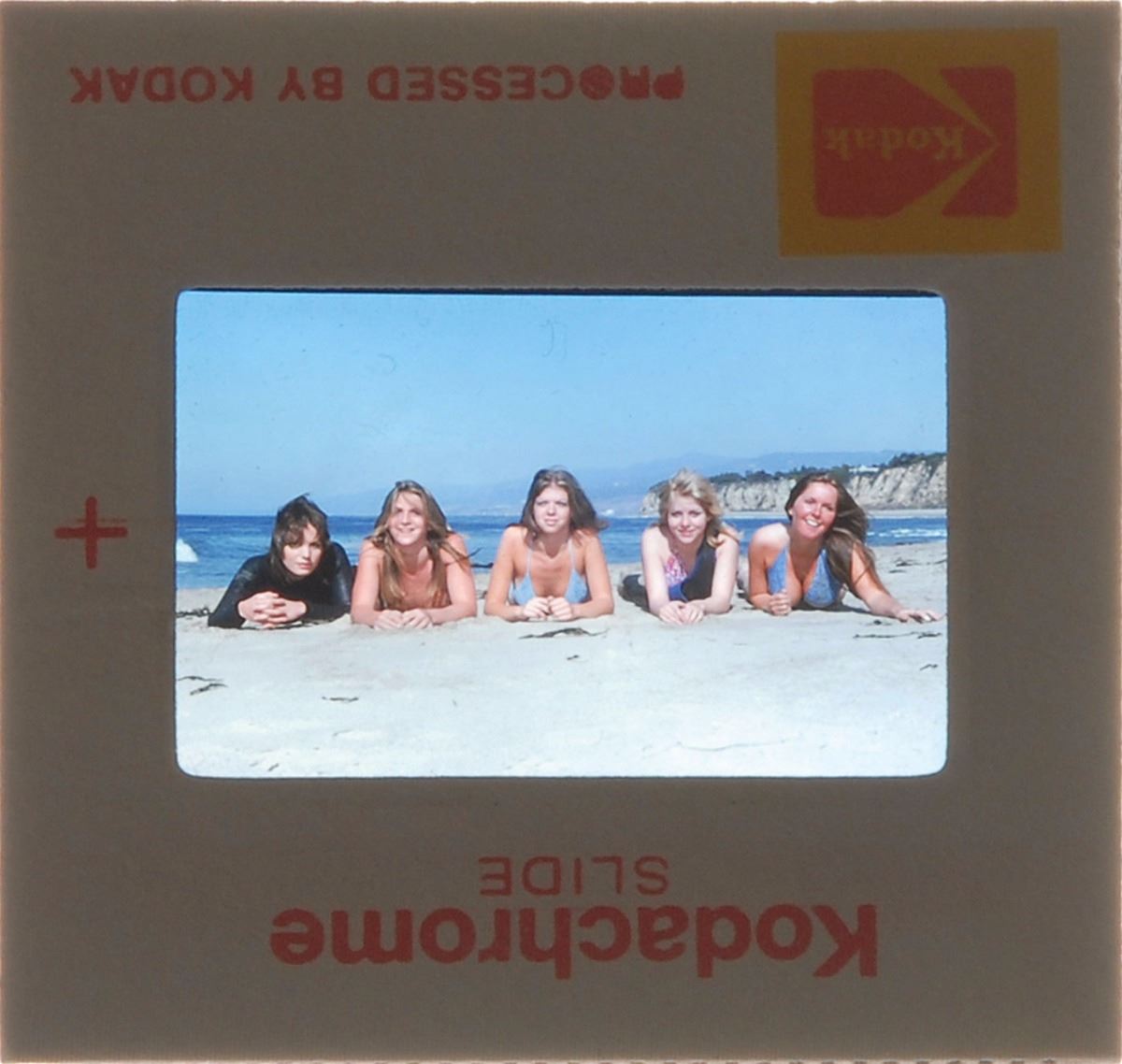 Two color 35mm slides by Richard Creamer: a Kodachrome slide showing the full band relaxing on the beach; and one solo shot of Cherie Currie singing on stage in a shiny gold outfit. In overall fine condition. Provenance: Richard Creamer Estate.