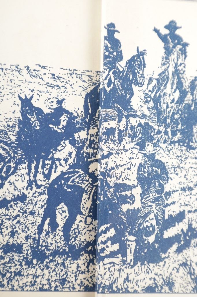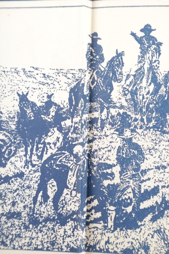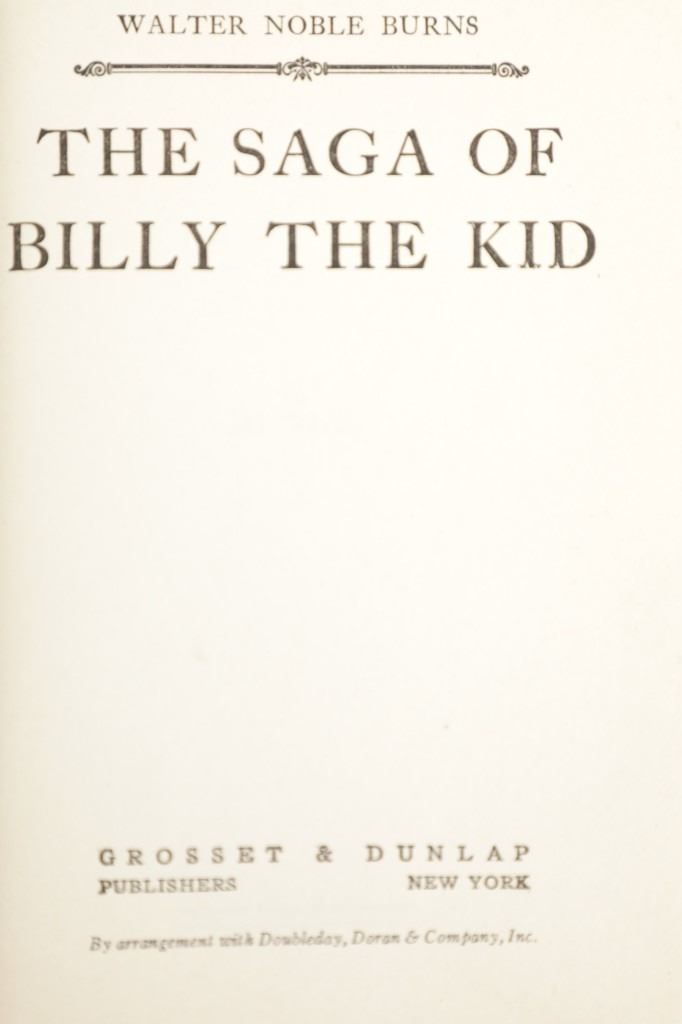 For your consideration is a Rare First Edition of "The Saga of Billy the Kid" by William Noble Burns, 1926, publisher Grosset & Dunlap. This entertaining and dramatic biography forever installed outlaw Billy the Kid in the pantheon of mythic heroes from the Old West and is still considered the single most influential portrait of Billy in this century. The book focuses on the Kid's life and experiences in the bloody war between the Murphy-Dolan and Tunstall-McSween gangs in and around Lincoln, New Mexico, between 1878 and 1881. Burns paints the Kid as a boyish Robin Hood or romantic knight galvanized into a life of crime and killing by the war's violence and bloodshed. Billy represented the romantic and anarchic Old West that the march of civilization was rapidly displacing. Walter Noble Burns's “Saga of Billy the Kid” kindled a fascination in Billy the Kid that survives to this day. Walter Noble Burns (1866-1932), a Chicago Newspaper writer in the early 20th century, traveled to New Mexico in the 1920s to meet those who knew Billy the Kid and visit the same spots where Billy the Kid roamed some 45 years before. When he sat down to write the book, he wrote like a cowboy. Burns was a writer of Western history and a Western fiction author. He was notable for this book. The orange cloth bound hardcover is in good overall condition. The intact top edge painted deckled pages are in very nice condition, age tanning noted. Measures 5.25"W x 7.75"L x 1"D, weight is 14oz.