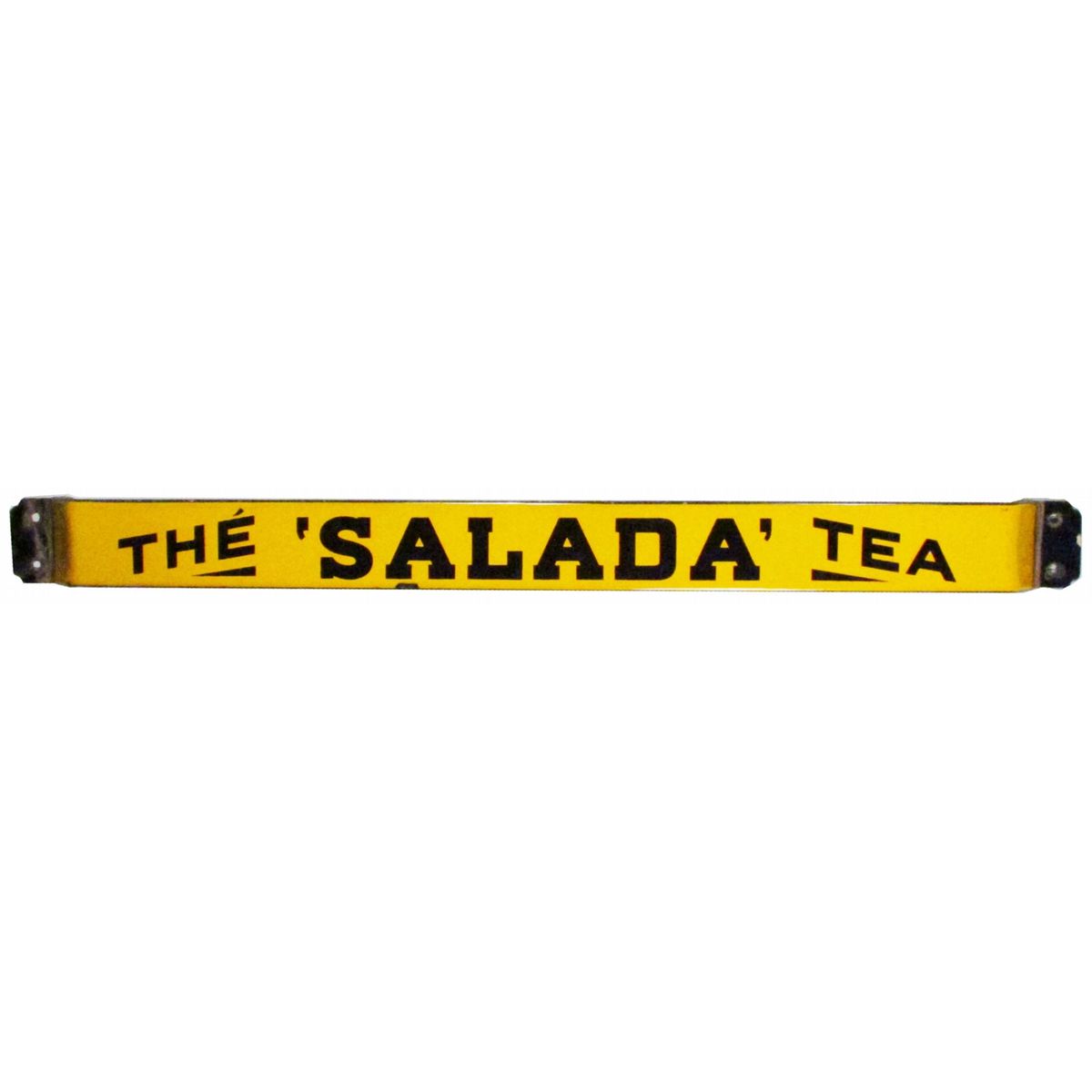 The Salada Tea Porcelain Door Push. Small chip at bottom otherwise excellent condition. 31 1/2 X 2 1/2 inches.