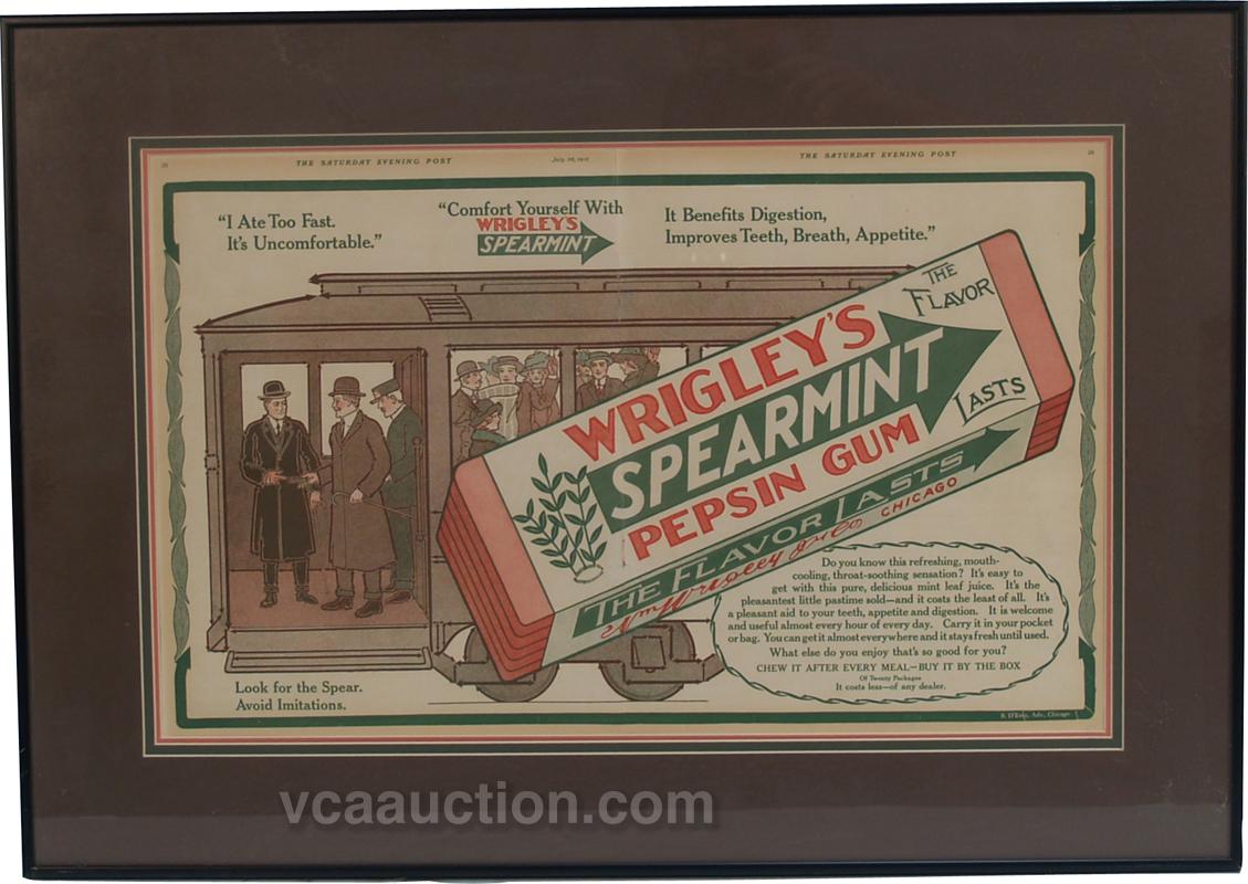 The Saturday Evening Post Wrigley's Gum Advertisement July 26, 1913 in frame - 27" x 19"