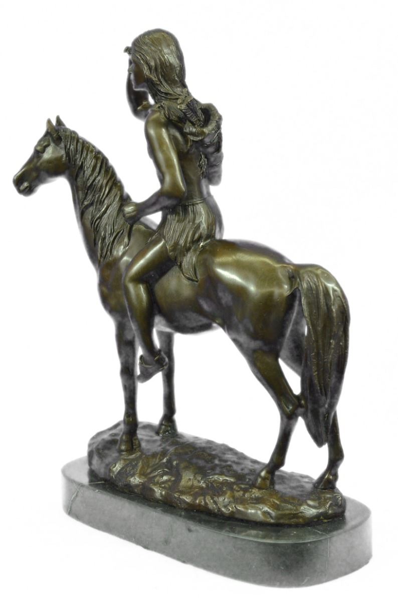 This Impressive Sculpture By Western Sculptor Cyrus Edwin Dallin (American, 1861-1944) Depicts A Noble Native American Warrior Atop His Horse, With His Hand Shading His Eyes As He Scans The Horizon. Please Click On The Thumbnail Images Above To See Additional Views, And Then Click On Any Image To Enlarge It. We Have Cast The Scout In Our Own European Art Foundry Using Genuine Pure Bronze. The Sculpture Is Finished With A Gorgeous Patina In Tones Of Brown. Mounted Onto A Black Marble Base. Bronze Dimensions With Marble Base: Height 14 X Width 11 inches. Weight: 17 Lbs. This Is Not An Original Of His Work But A Recent Reproduction.
